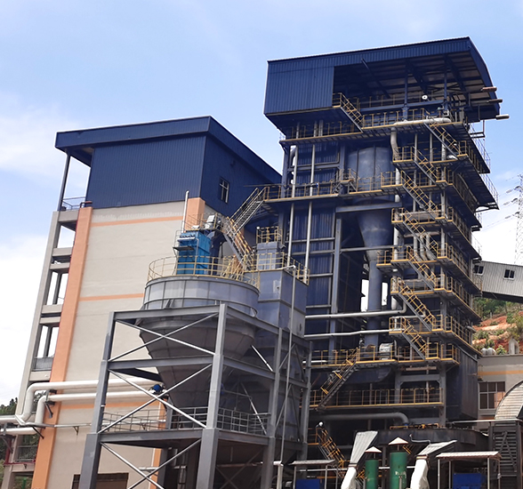 工作流程: 燃料通過輸送機(jī)送入爐膛,在密相區(qū)與空氣混合,流化并燃燒,高溫?zé)煔鈹y帶大量正在燃燒的固體顆粒沖刷稀相區(qū),一邊燃燒,一邊將燃燒釋放的熱量傳遞給受熱面,加熱工質(zhì)(水),未燃燼的固體顆粒進(jìn)入分離器,被收集下來,通過返料器重新送回密相區(qū),循環(huán)燃燒,從而提高燃燒效率。燃燼的固體細(xì)小顆粒隨高溫?zé)煔馓右莩龇蛛x器,沖刷對(duì)流受熱面和尾部受熱面,經(jīng)除塵器除塵后排入大氣。