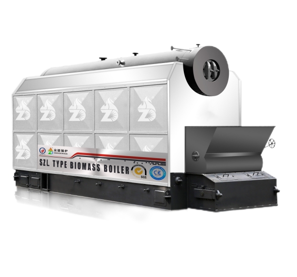 SZL燃生物質(zhì)水管蒸汽鍋爐是臥式雙鍋筒縱置式鏈條爐排水管蒸汽鍋爐。鍋爐采用快裝或組裝結構,2~4t/h為快裝水管結構,在廠內(nèi)全部整裝后出廠,6~25t/h由上下兩大件組成,上部大件為本體受熱面,下部大件為燃燒設備。鍋爐本體前端為四周布置的水冷壁,上部與鍋筒連接,下部與集箱連接組成燃燒室,以吸收爐膛輻射熱,其后端在上下鍋筒之間布置密集的對流管束,燃燒后的高溫煙氣經(jīng)過二次回程橫向沖刷對流受熱面后引至單獨布置的省煤器,最后進入除塵器經(jīng)煙囪