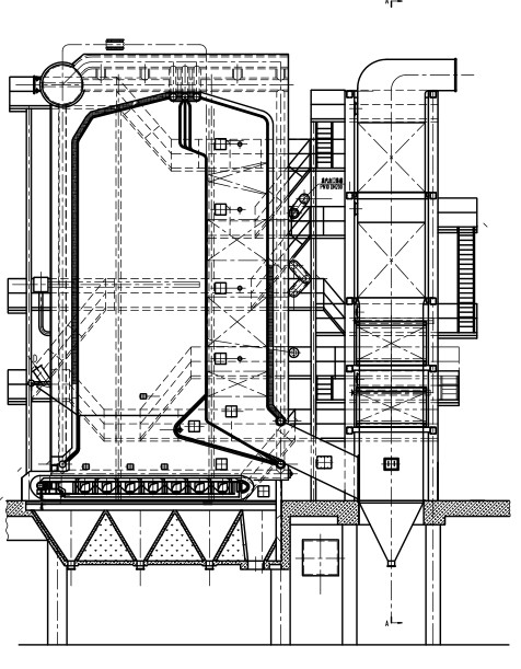 3. 爐膛及受熱面通道四周均采用全封閉式的膜式水冷壁,爐膛橫截面積大,容積大。